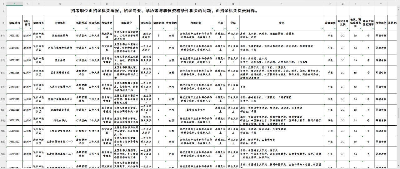 附:达州市部分岗位表